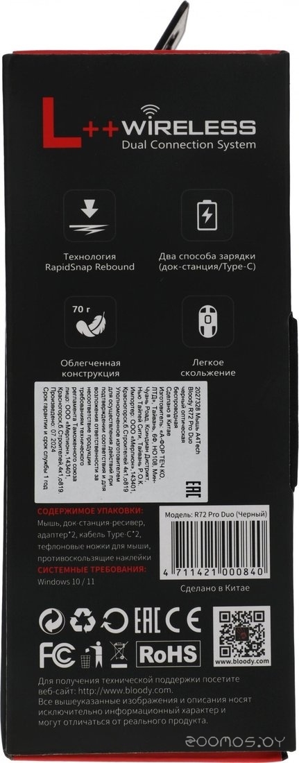 | Вес мыши | 70 г | ||