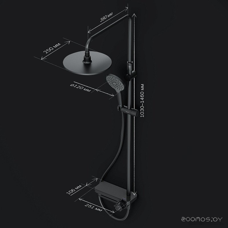 Вылет верхнего душа: 552 мм