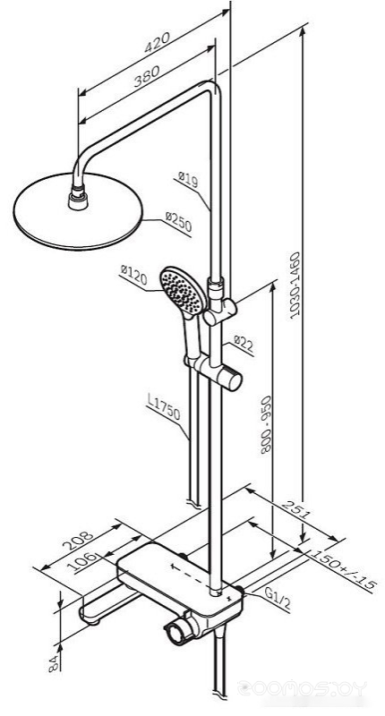 | Диаметр (ширина) верхнего душа | 220 мм | ||