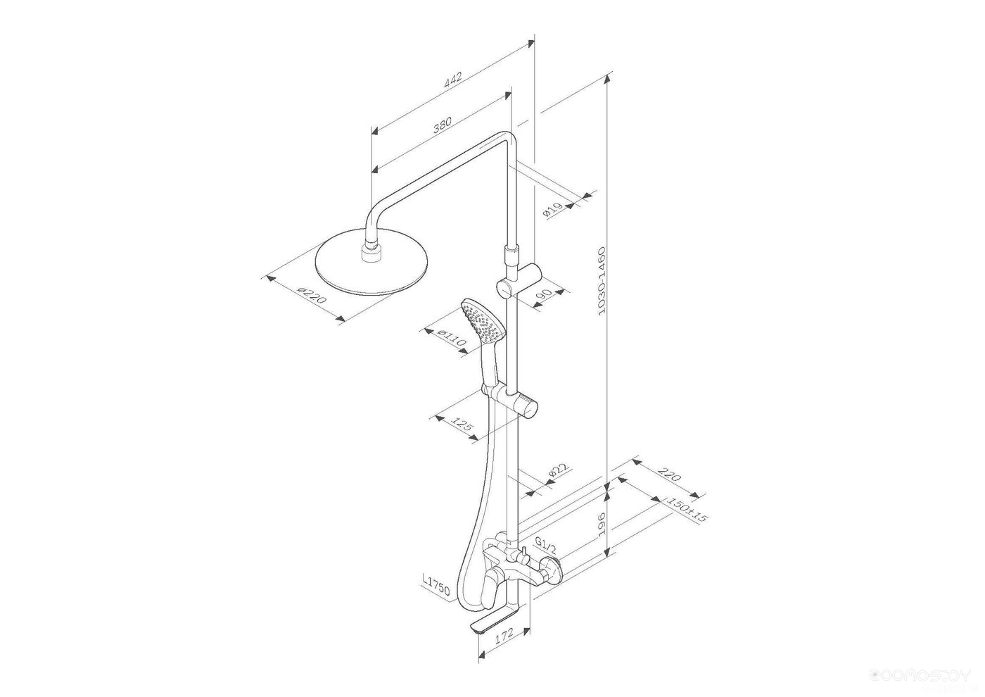 Вылет верхнего душа: 442 мм