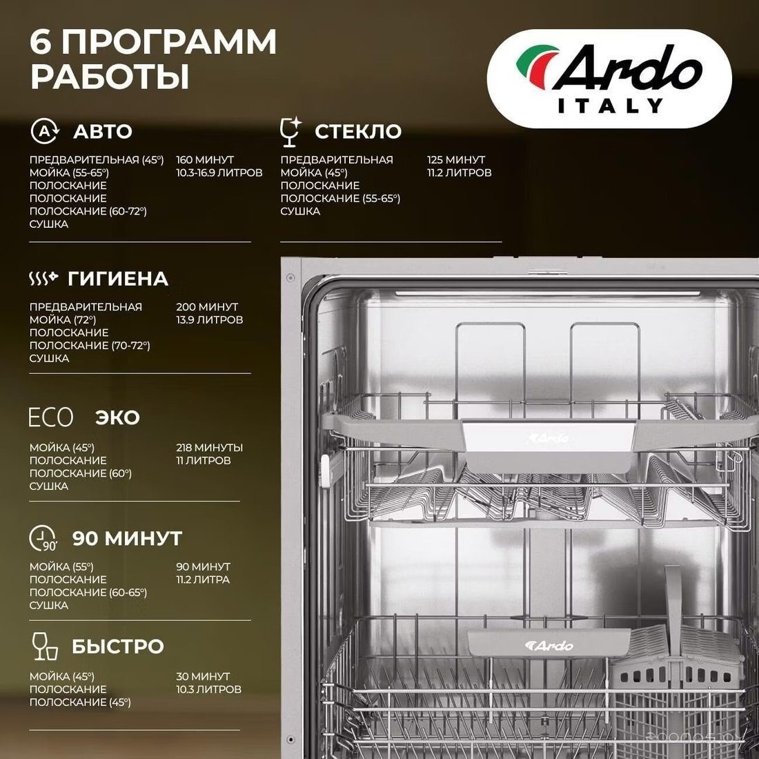 | Количество программ мойки | 6 | ||