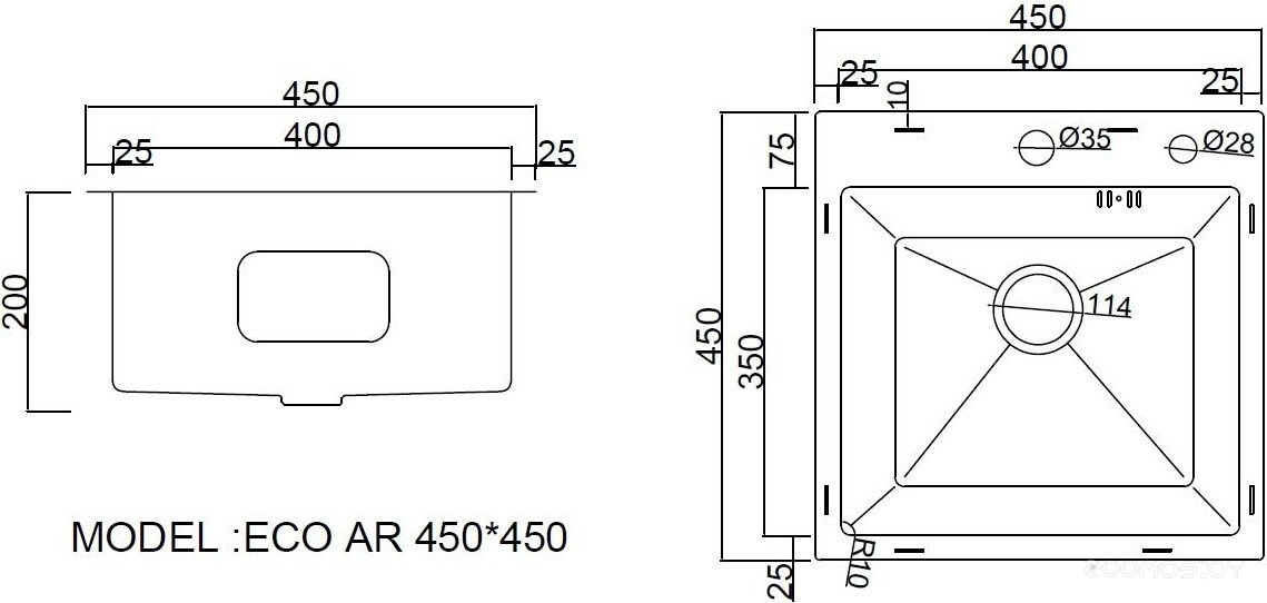 Кухонная мойка ARFEKA ECO AR 450*450 SATIN DECOR (настольная)