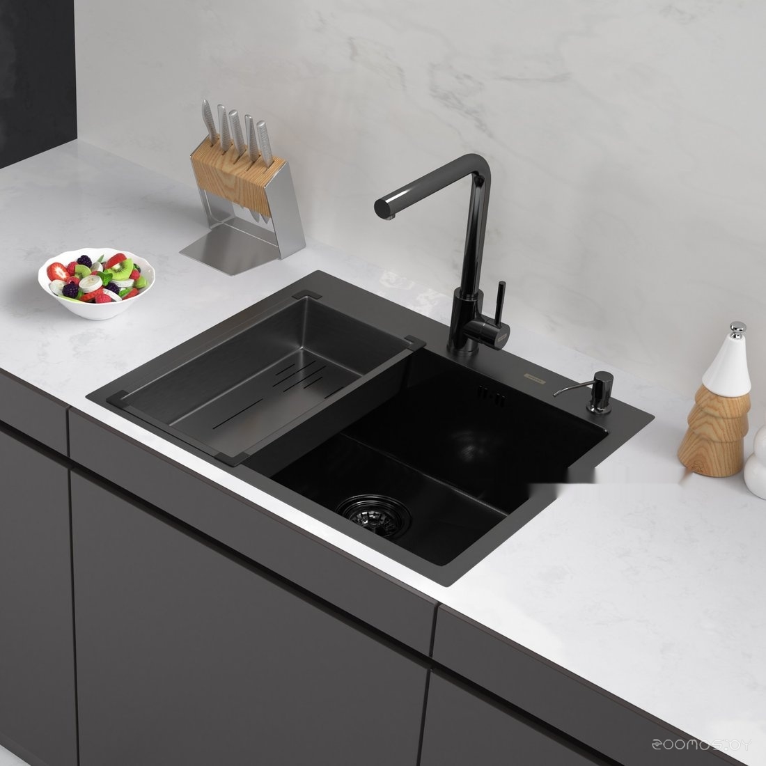 Кухонная мойка ARFEKA Eco AR мойка 600*500, коландер G, дозатор Black Decor Millet
