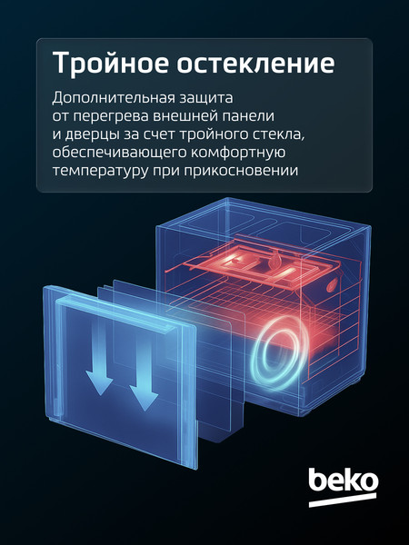 | Количество стекол дверцы духовки | три | ||