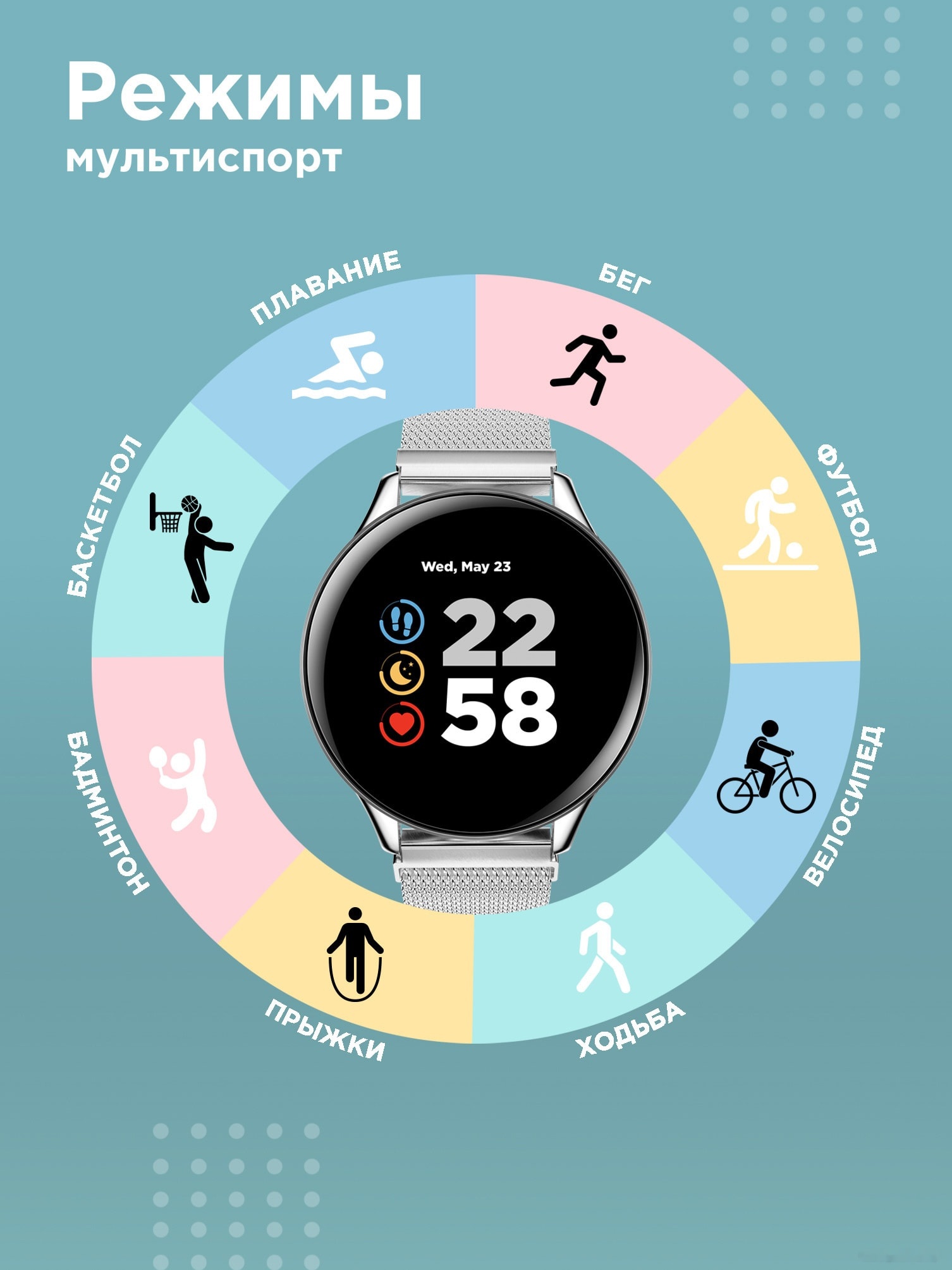 | Спортивные профили | игровые виды спорта, бег, плавание, xодьба, кардио тренировки, велоспорт | ||