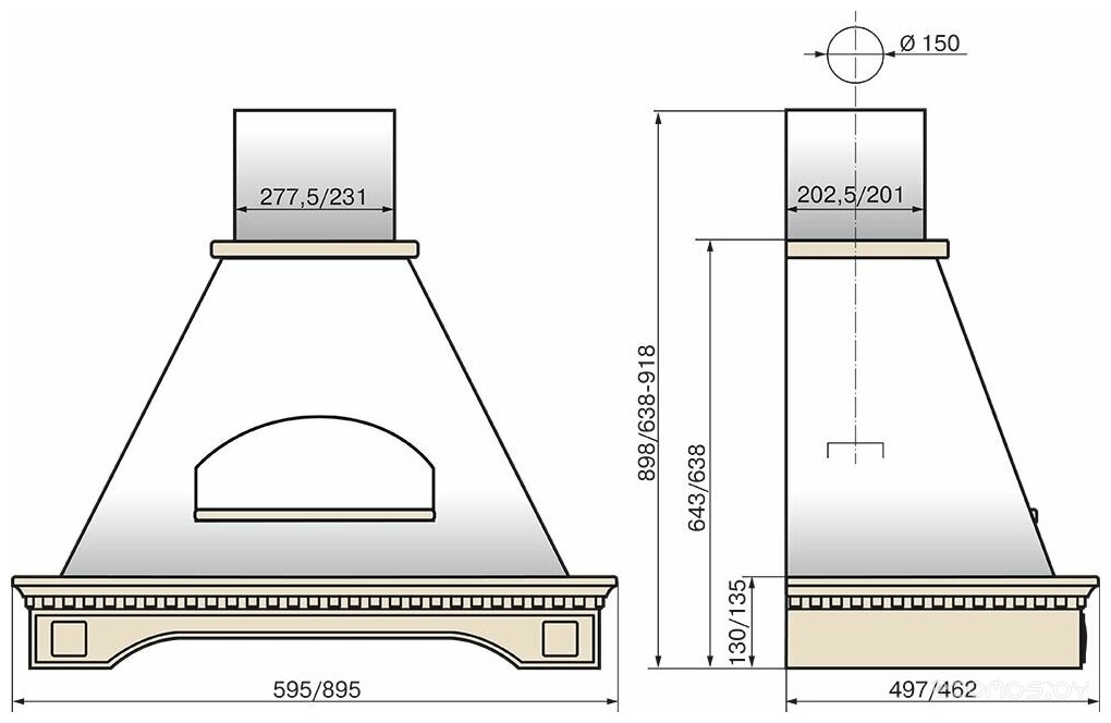 | Диаметр патрубка воздуховода | 150 мм | ||