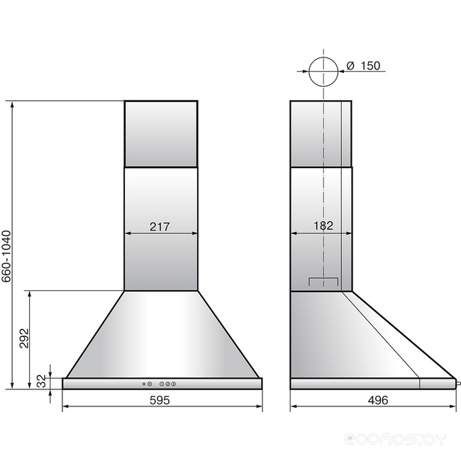 | Диаметр патрубка воздуховода | 150 мм | ||