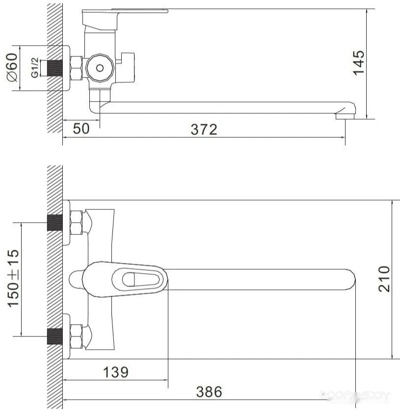 | Длина излива | 372 мм | ||