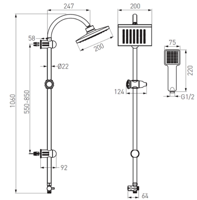 | Диаметр (ширина) верхнего душа | 200 мм | ||
