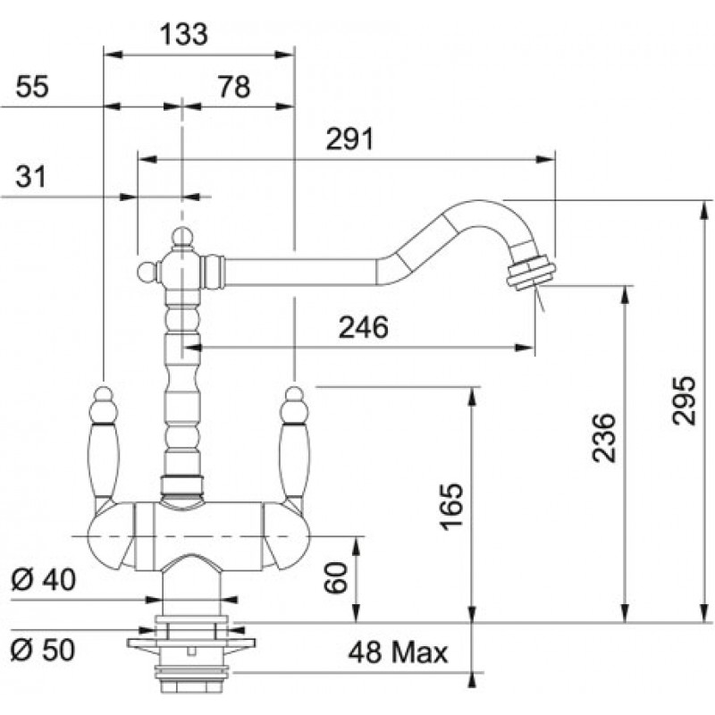 Длина излива: 246 мм