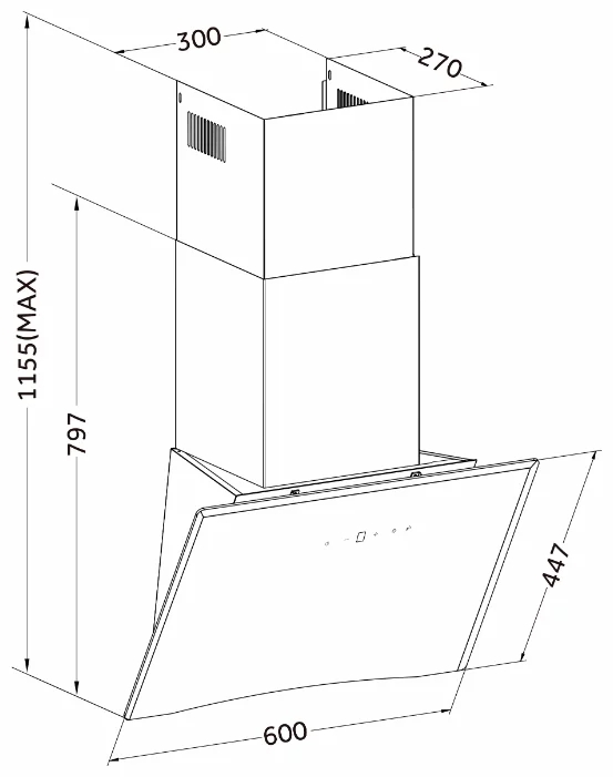 | Тип пристенной вытяжки | наклонная | ||