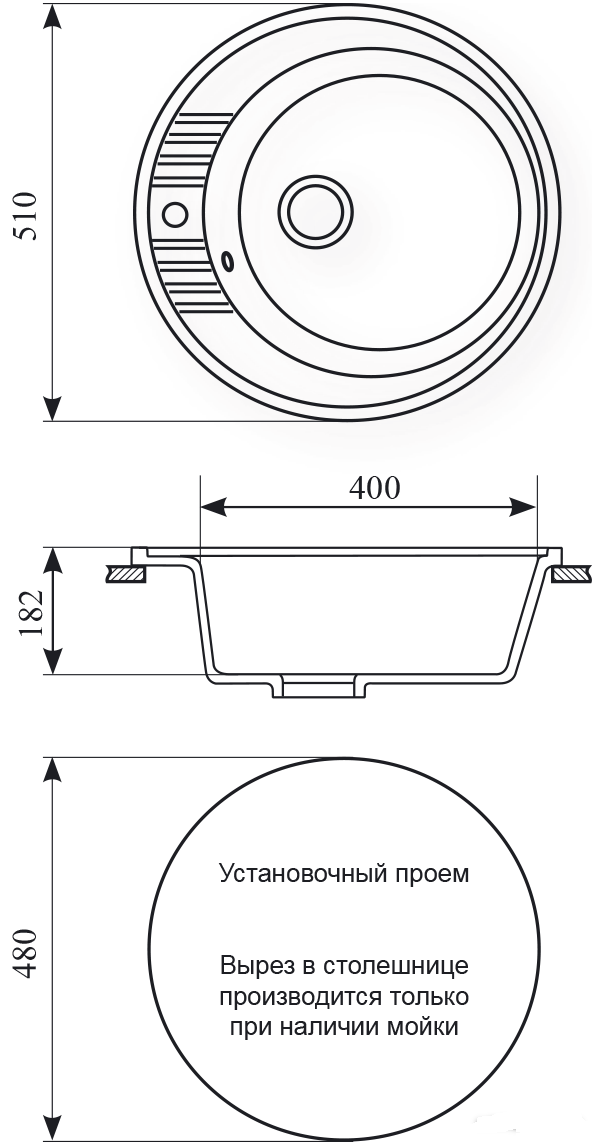 | Глубина монтажного отверстия под мойку | 45.5 см | ||