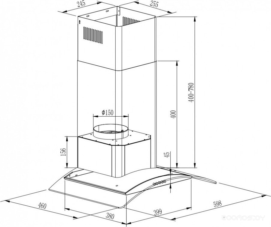 | Диаметр патрубка воздуховода | 150 мм | ||