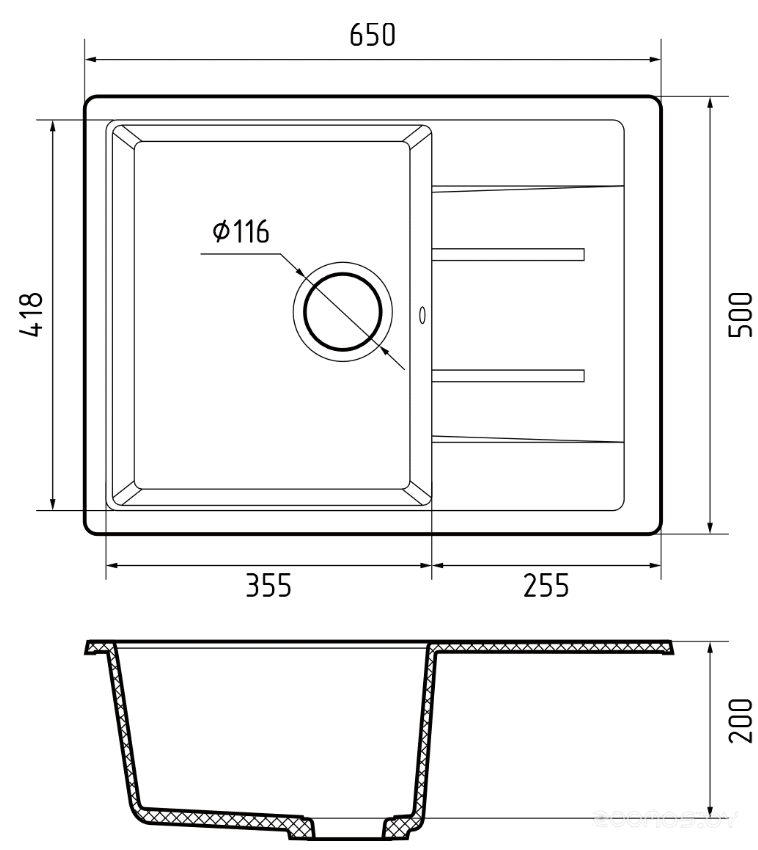 Ширина мойки: 65 см