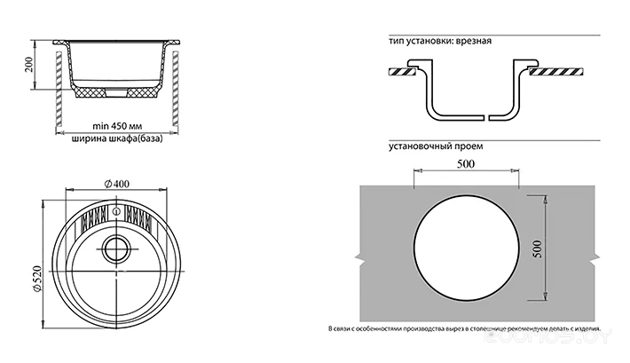 | Установка | над столешницей | ||