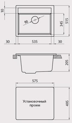 | Ширина монтажного отверстия под мойку | 57.5 см | ||