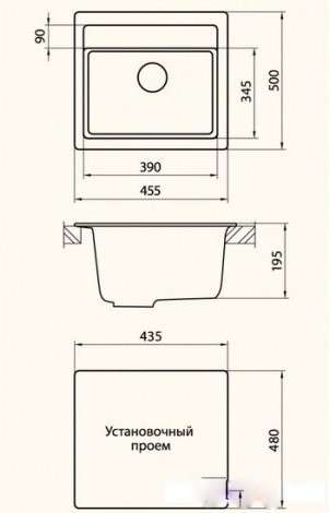 | Глубина монтажного отверстия под мойку | 48 см | ||