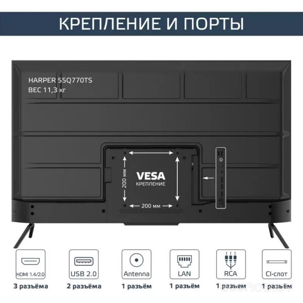 | Тип крепления VESA | 200x200 | ||