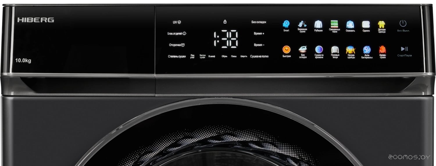 | Программы | Смешанные ткани, Освежить, сушка по времени, Шерсть, Деликатные вещи, Сушка в шкаф, Пуховики, Экстра, Быстрая, Одеяла, Детские вещи, Сушка под утюг | ||