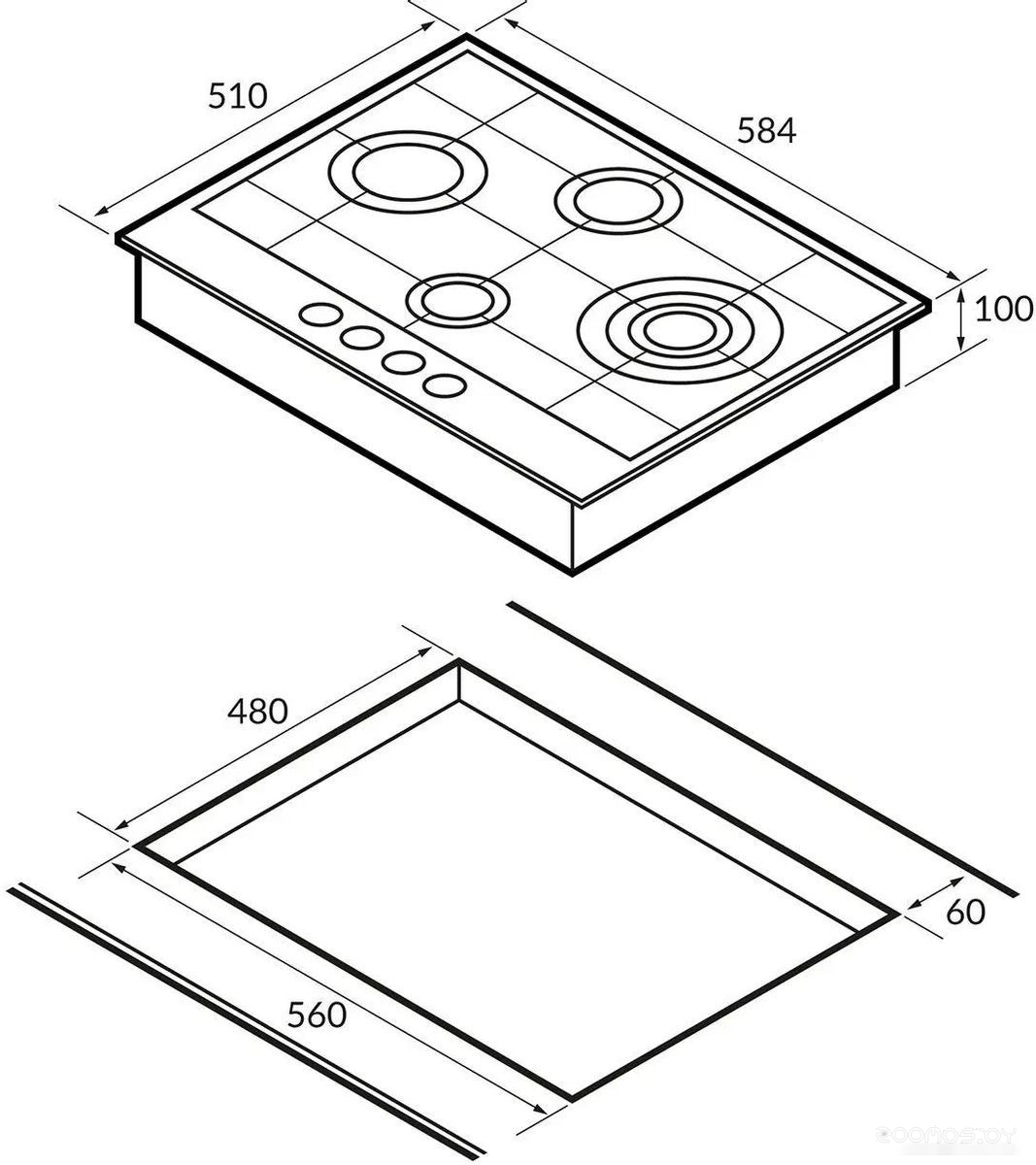 | Всего конфорок | 4 | ||