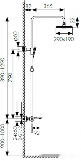 | Диаметр (ширина) верхнего душа | 290 мм | ||