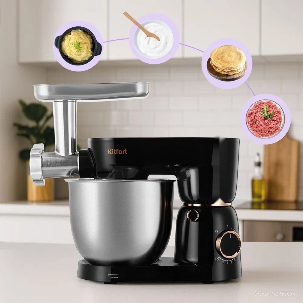 | Функции | смешивание, замешивание дрожжевого теста, взбивание, рубка, мясорубка | ||