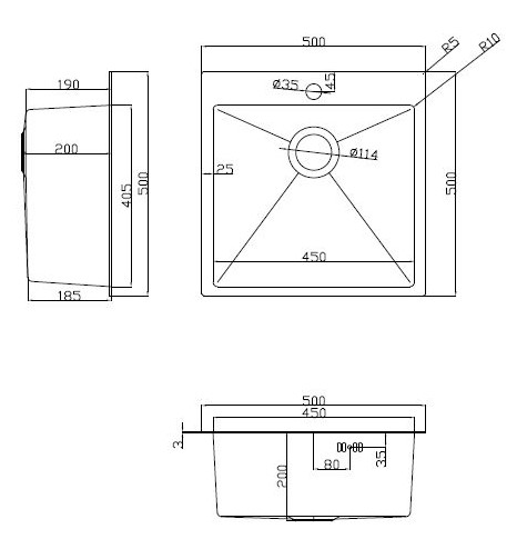 | Форма мойки: | квадратная | ||
