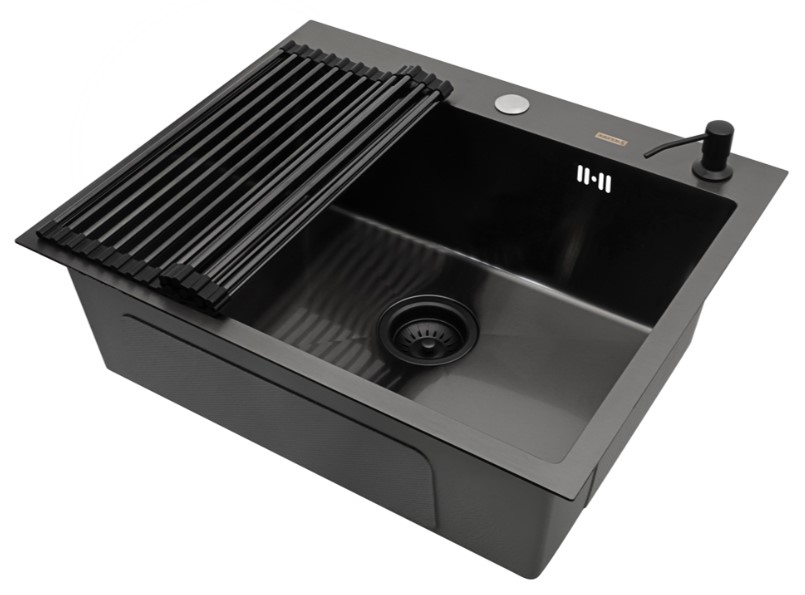 | Комплектация: | Кухонная мойка, роллер-мат, дозатор для жидкого мыла, сливная арматура | ||
