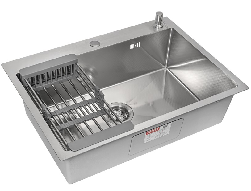 Комплектация: Кухонная мойка, телескопический коландер, дозатор для жидкого мыла, сливная арматура