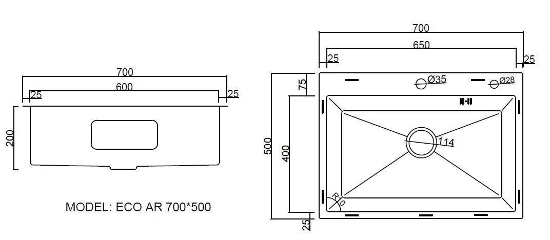 Комплект ARFEKA ECO AR мойка 700*500, коландер, дозатор SATIN DECOR код: 437.036