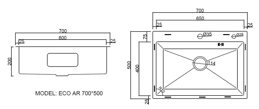 Длина/диаметр мойки, см: 70