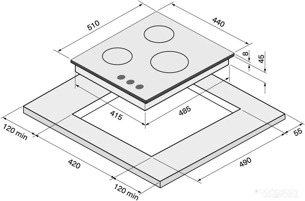 | Всего конфорок | 3 | ||
