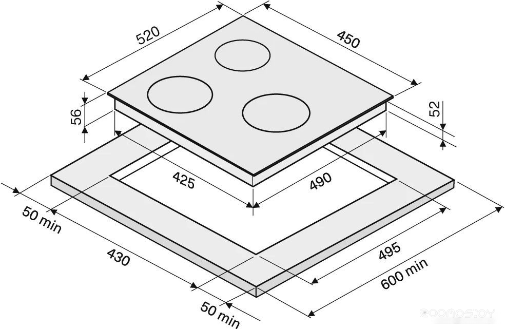 | Всего конфорок | 3 | ||