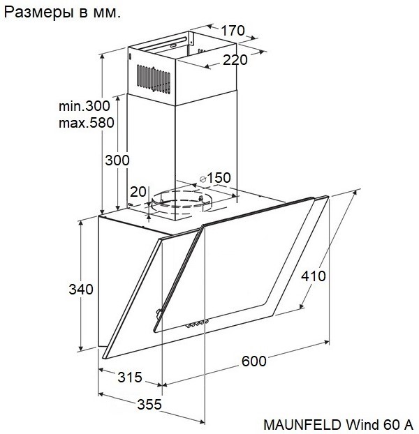 | Диаметр воздуховода | 150 мм | ||