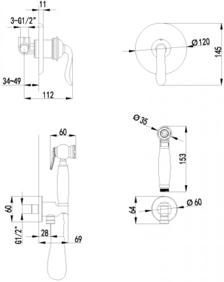 Диаметр (ширина) ручного душа 35 мм