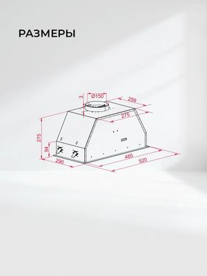 | Диаметр патрубка воздуховода | 150 мм | ||