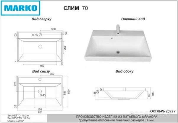 | Отверстие под перелив | есть | ||