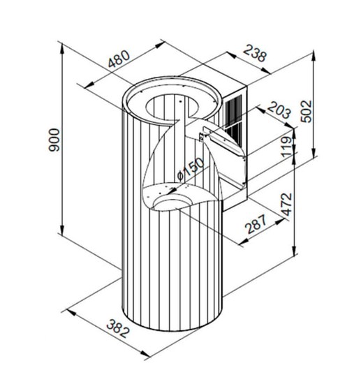 | Диаметр патрубка воздуховода | 150 мм | ||