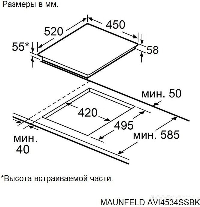 | Глубина для встраивания | 49.5 см | ||