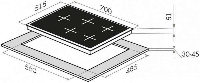 Размеры для встраивания (ШхГ): 56 x 48.5 см
