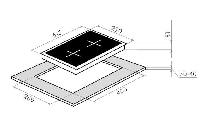 | Размеры для встраивания (ШхГ) | 26 x 48.5 см | ||