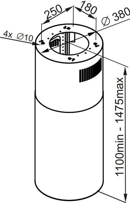 Максимальный уровень шума этой вытяжки составляет 52 дБА, что относительно тихо для кухонной вытяжки. Капюшон имеет ширину 38 см, глубину 38 см и высоту 110 см. Диаметр воздуховода составляет 150 мм, что позволяет эффективно удалять дым и запахи.