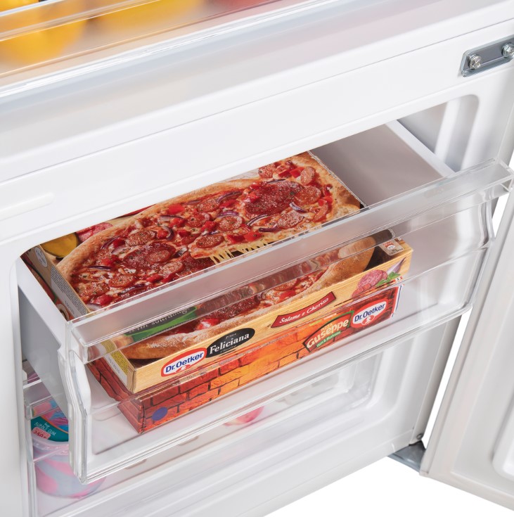 Один компрессор питает как холодильное, так и морозильное отделения, поддерживая идеальную температуру ваших блюд, несмотря ни на что. С тремя просторными полками и двумя морозильными отделениями у вас будет достаточно места для хранения всех ваших продуктов.