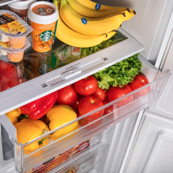 Дополнительные функции Maunfeld MFF144SFW включают функцию переохлаждения, стеклянные полки, два пластиковых дверных балкона, один ящик для овощей и фруктов и производительность замораживания 2,5 кг/день. Этот холодильник — идеальный вариант для тех, кому нужен узкий или дачный холодильник, шириной всего 54 см и весом 43 кг.