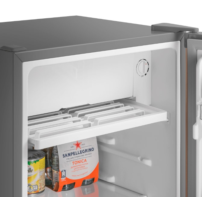 Одной из примечательных особенностей этого холодильника является его полезный объем 85 литров, что делает его идеальным для небольших помещений. Регулируемые полки холодильника позволяют легко организовать ваши продукты и эффективно хранить их в соответствии с вашими предпочтениями.