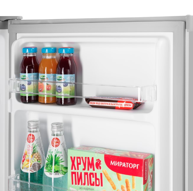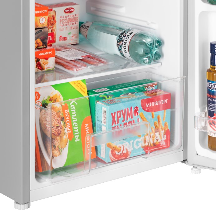 Полки холодильника Maunfeld MFF83SL изготовлены из стекла, что делает их прочными и долговечными. Двери балконов пластиковые, а их три. Ящик для овощей и фруктов — еще одна функция, которая помогает дольше сохранять продукты свежими. Холодильник имеет ширину 47,4 см, глубину 44,7 см и высоту 83,1 см при весе 19 кг.