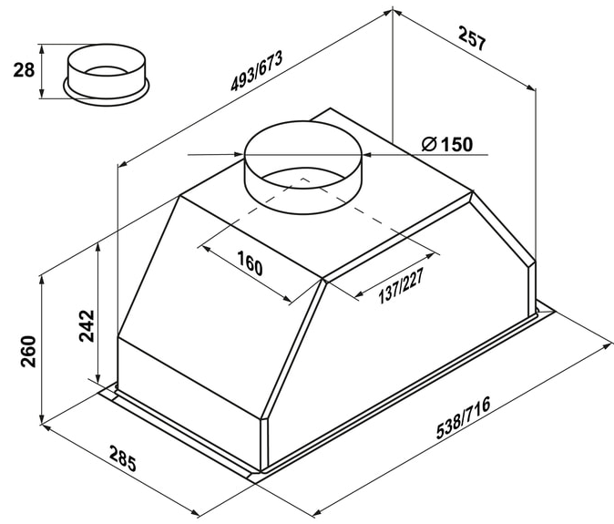 | Диаметр патрубка воздуховода | 150 мм | ||