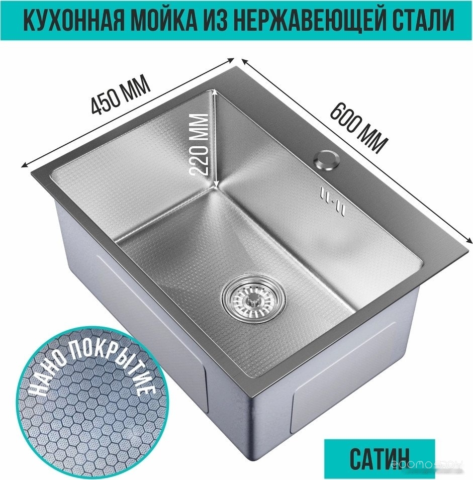 Ширина мойки: 60 см