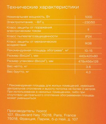 | Площадь обогрева | 15 м2 | ||