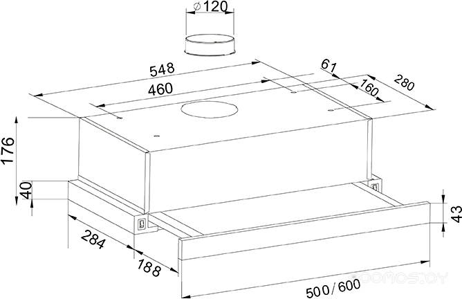 | Диаметр патрубка воздуховода | 120 мм | ||